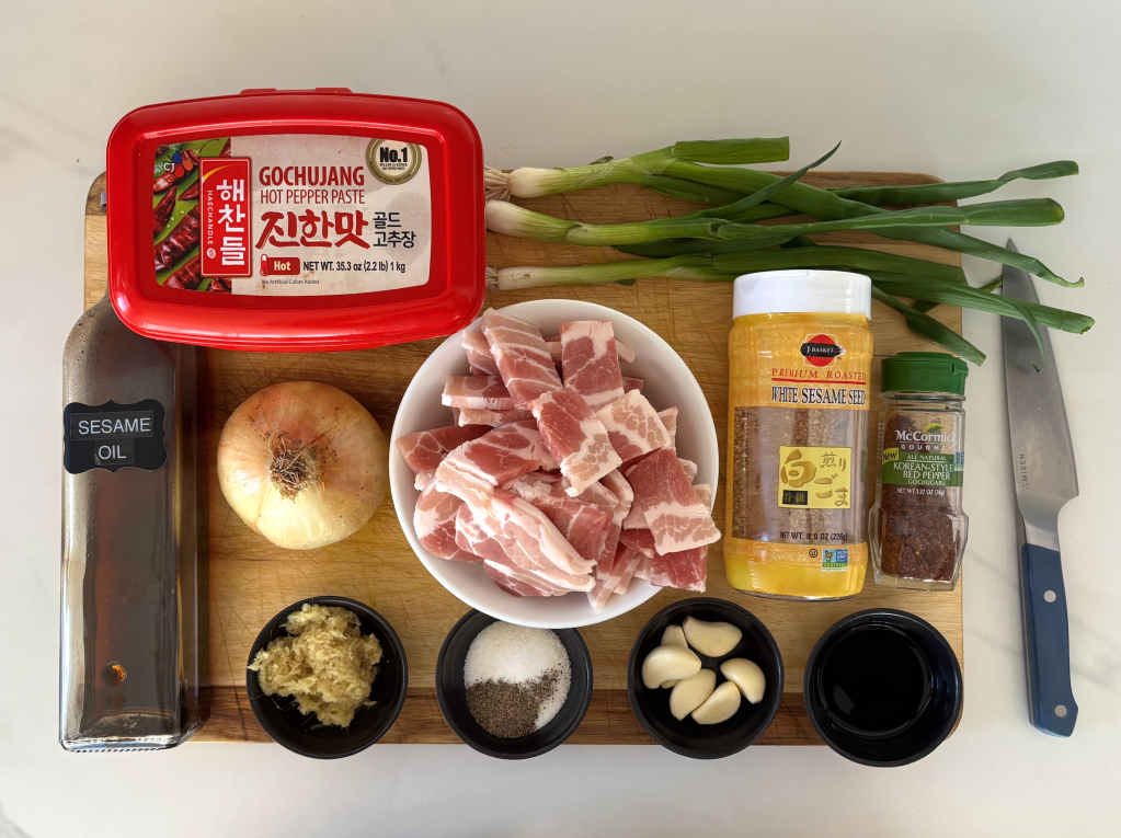 It’s been really cold day in NY and I was in the mood for some spice. This is my adaptation of a popular Korean pork stir-fry. It comes together in under 15 minutes and uses just one pan. Also, you only need to use 1 tablespoon to measure all the seasonings!