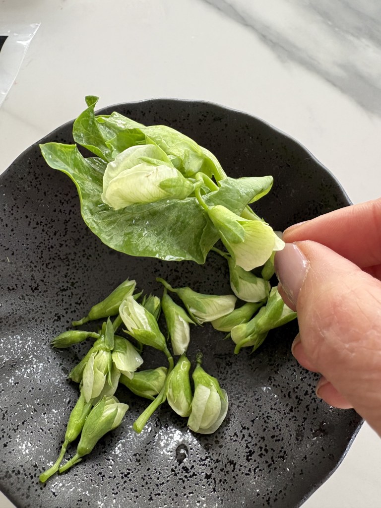 I was lucky enough to find small flowers on my snow-pea shoots so I used those as my edible flowers